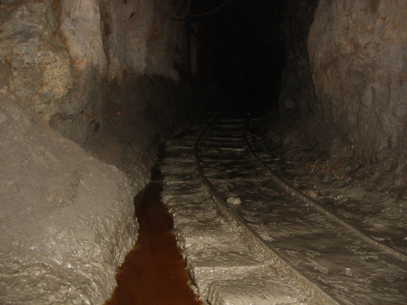 Nous suivons toujours le guide dans les entrailles de la montagne. Nous grimpons sur un surplomb, redescendons par une échelle dans un boyau, débouchant dans une galerie plus large, qui en croise une autre. Un rail la traverse.